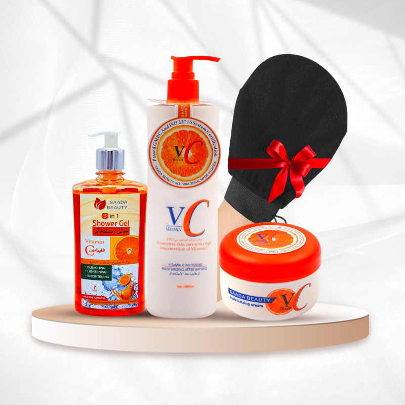 اسم المنتج: مجموعة فيتامين C للعناية وتفتيح البشرة – 3 قطع